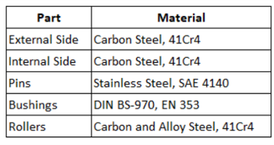 APLICACIONES: Portador de caña • Portador de bagazo • Rodillo de acero • Transportador de bandejas • Elevador de cangilones • Transportador de placas • Enlace forjado simple y adjunto • DBC