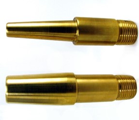 Los tamaños de boquilla varían de 1/2” a 1¼” (12,700 mm a 31,750 mm) y están disponibles en latón, Delrin o acero inoxidable.