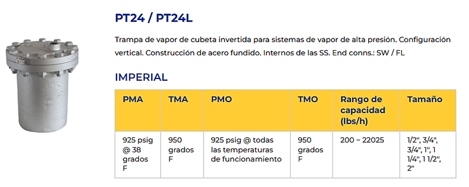 - Las trampas de vapor de cubeta invertida banderín están diseñadas para soportar presiones más altas y vapor sobrecalentado.