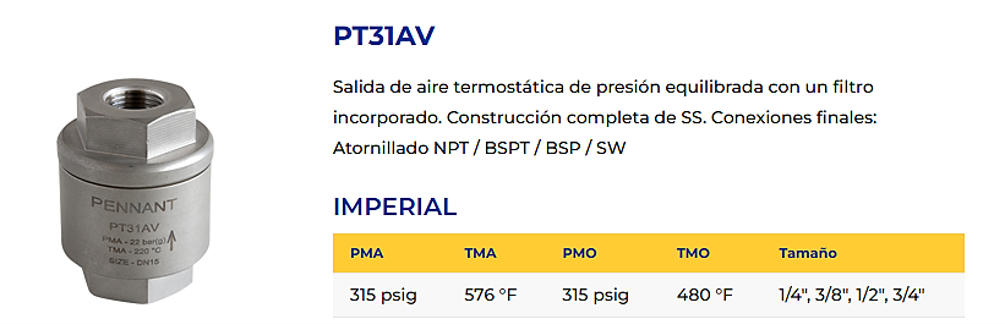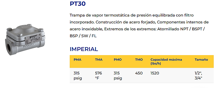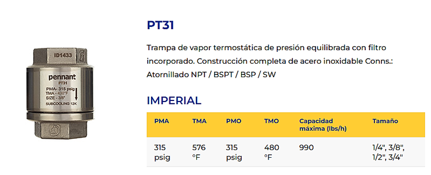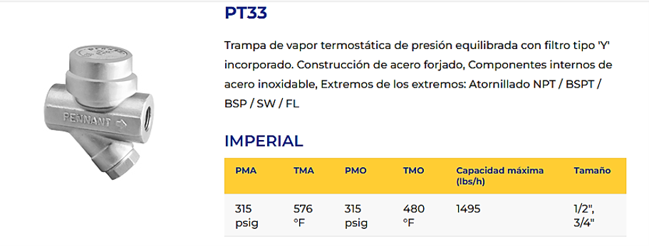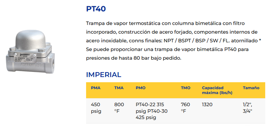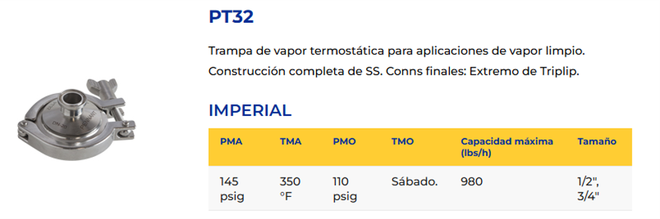 Trampa de vapor termostática para una aplicación de vapor limpio