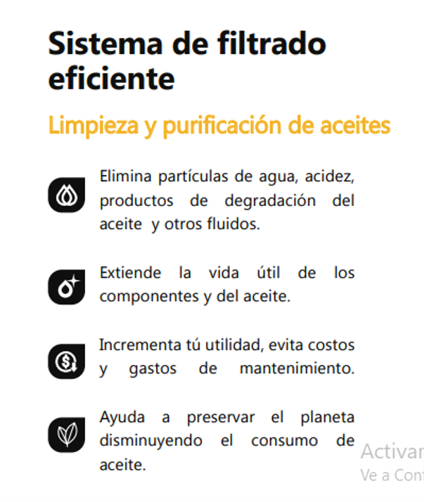 El Filtrar sus lubricantes mejora dramáticamente el desempeño y rendimiento del aceite, y por consecuencia alarga la vida útil de sus equipos y componentes, previniendo así tener Downtime y costos por reparación y mantenimiento.